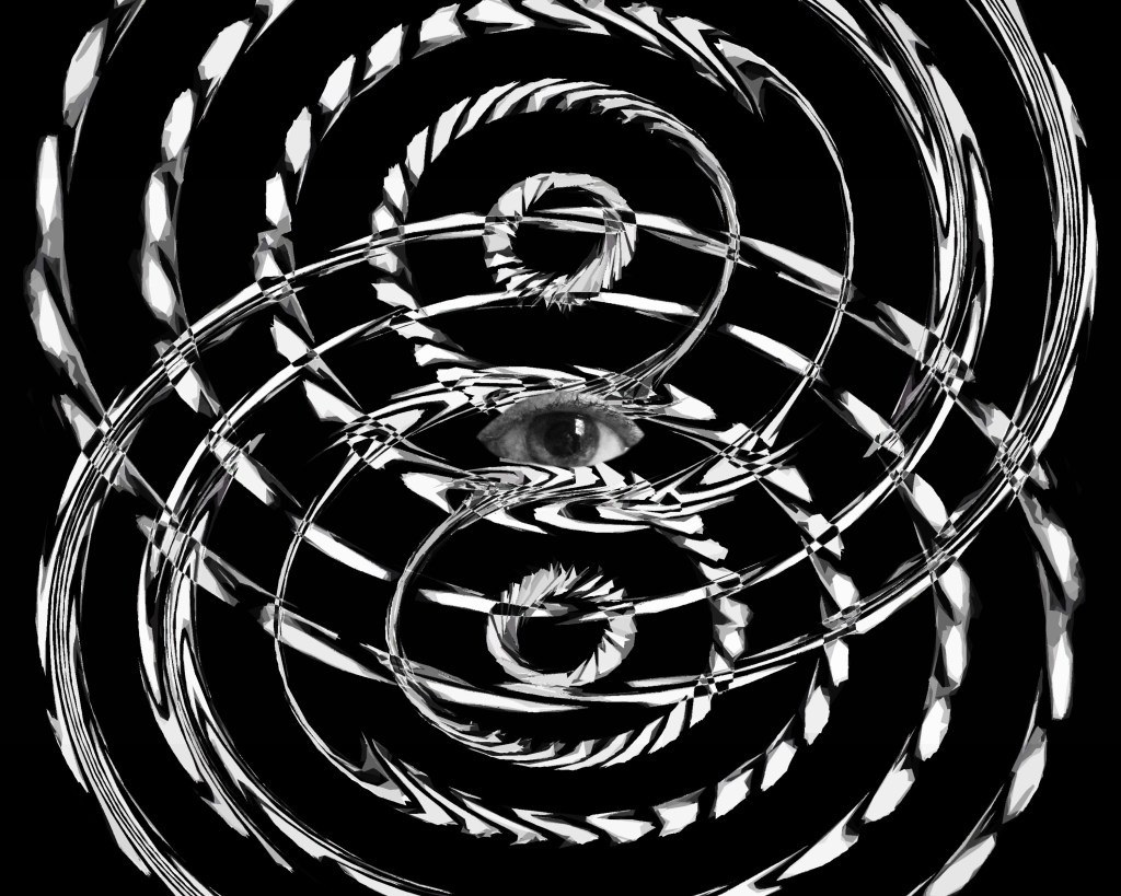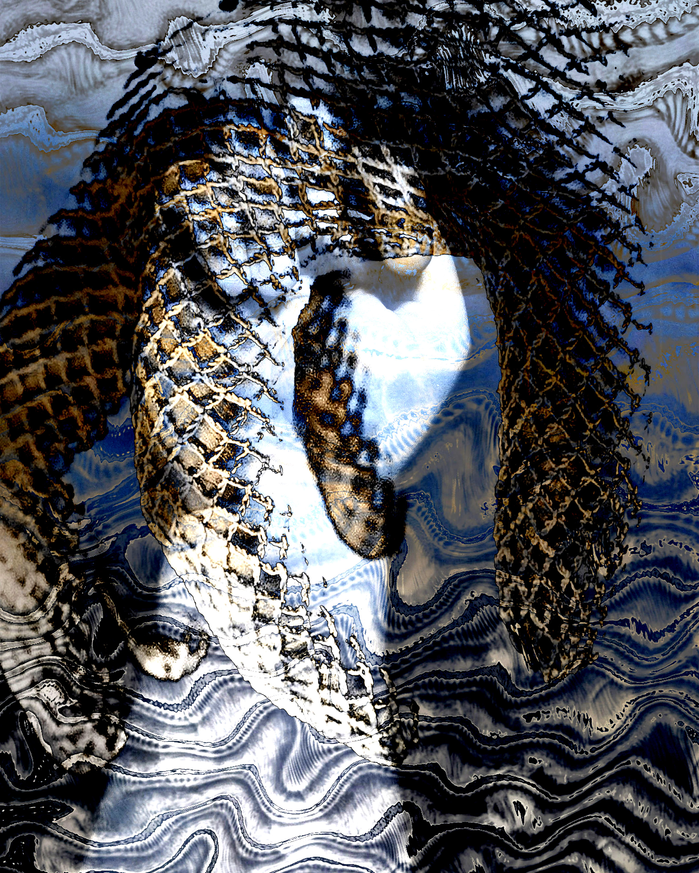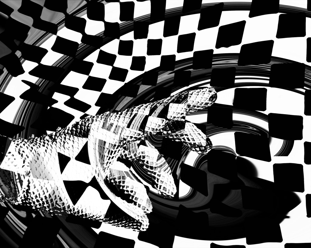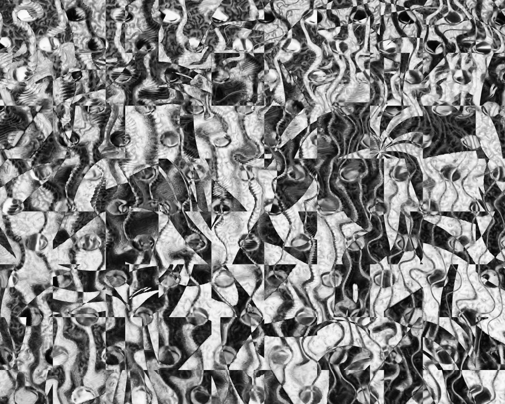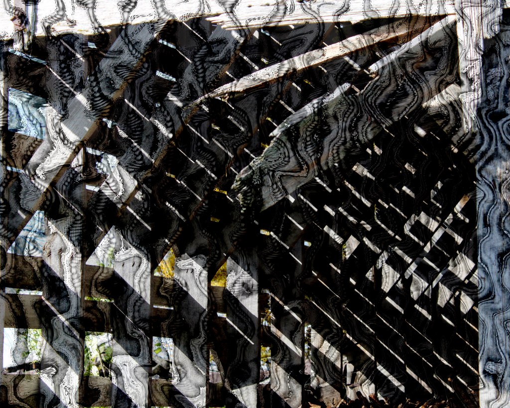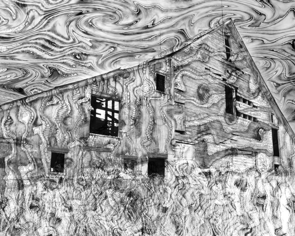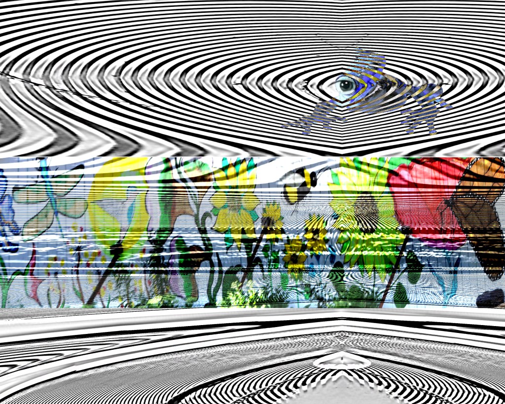 Comment on the new work: I’ve discovered a problem with the way I distort my photos. Each distortion removes the sharpness of the photograph. I have been going back through my various pattern photos and resharpening each. And there is a problem with intense color, as well. Intense colors tend to pixelate. I’ve been busy reworking both problems. Those problems only showed themselves on larger prints. The first two black and whites below may take ages to fix. I’ve been working with one newer worked combination which is still not complete at this date. I’m calling “Eyes”, so far. My goal is to enter various eyes into each black hole. The decision has not yet been made about the type of eyes. And the blending in of each eye needs to be closer to the black and white background. At least, I’m learning more about the digital side of photography. I’m also very aware that there is a down side to using film that is then digitalized. But even that is improving with each use. The down side is that I can’t just createan image by playing around with it’s combinations but need to pay attention to each distortion, each intense color use, each blending of images, etc. And that takes a lot more time. So, please, be patient for new work.