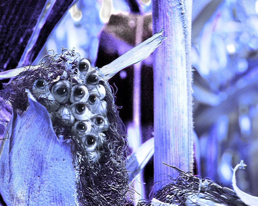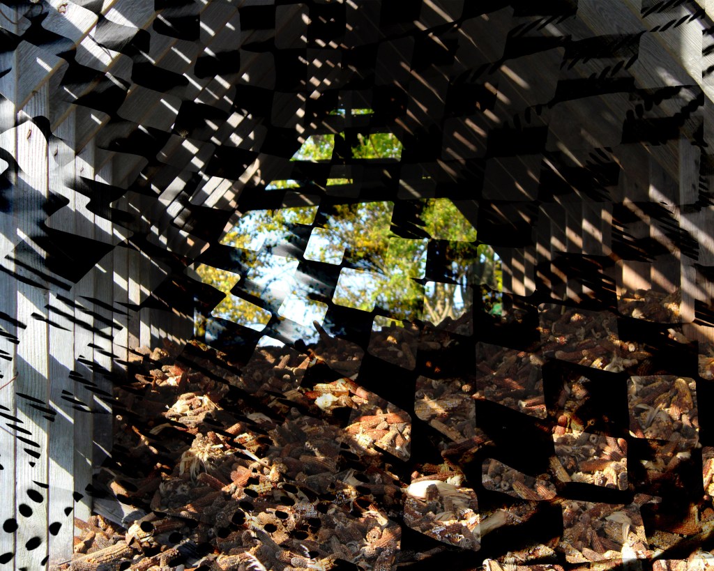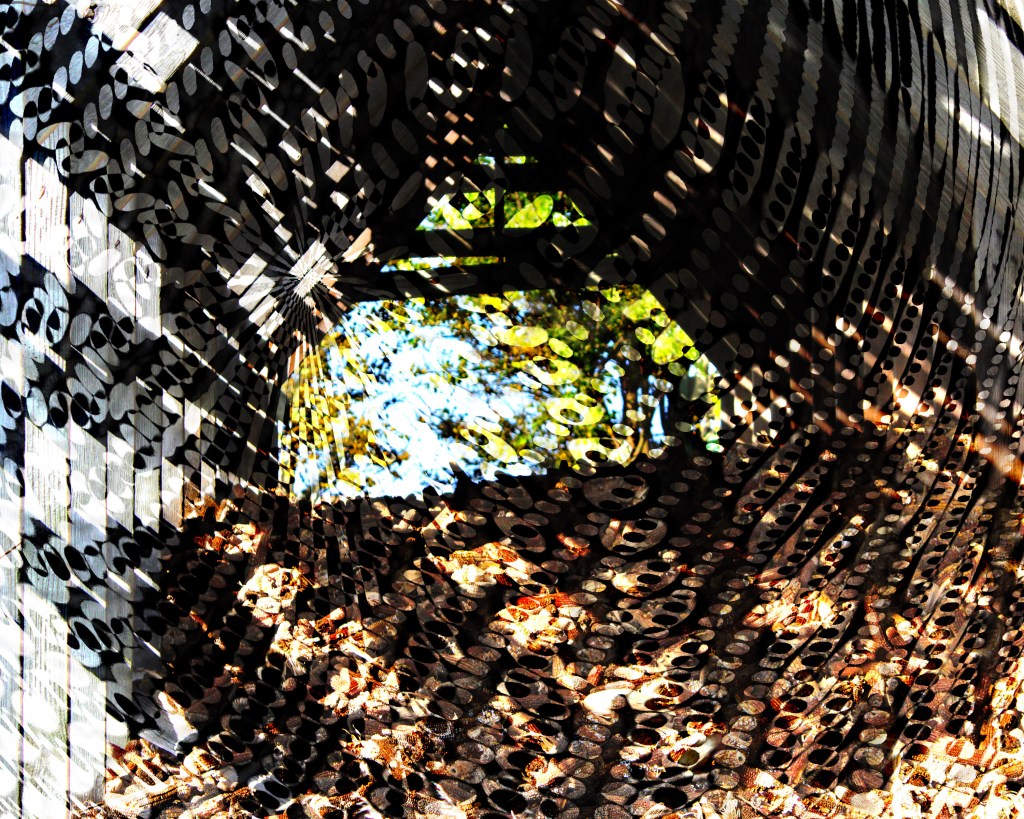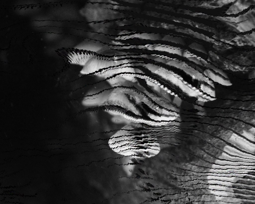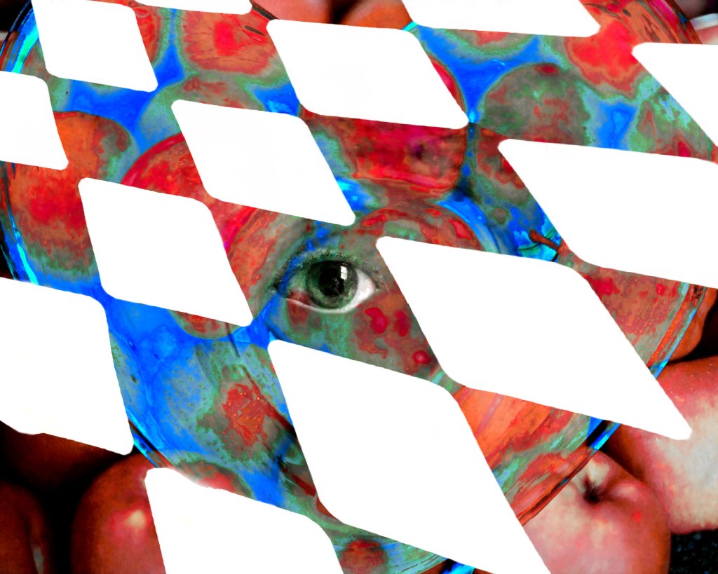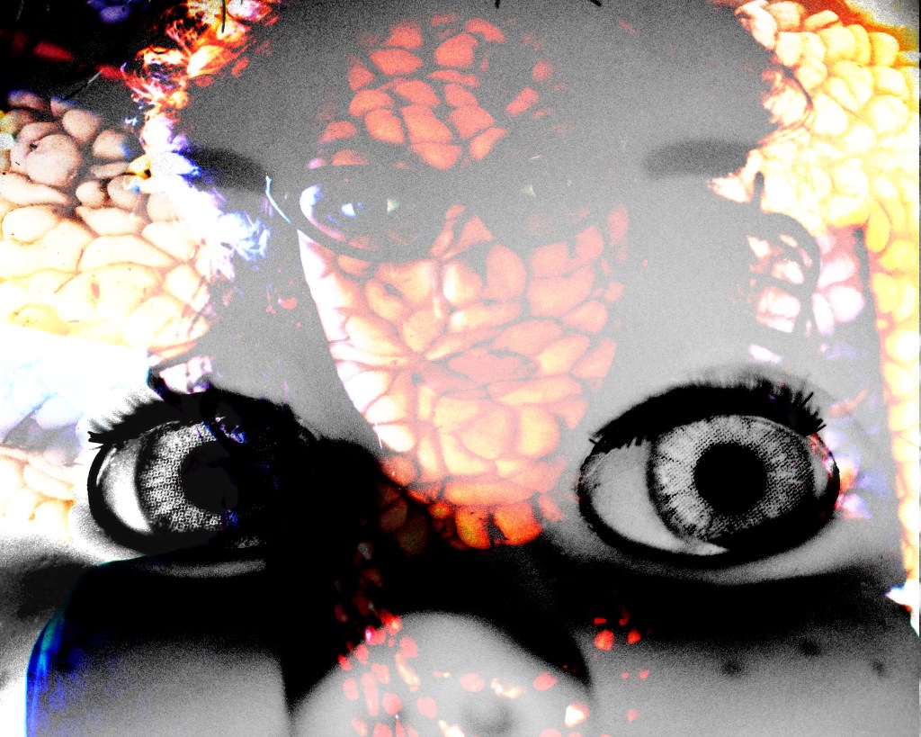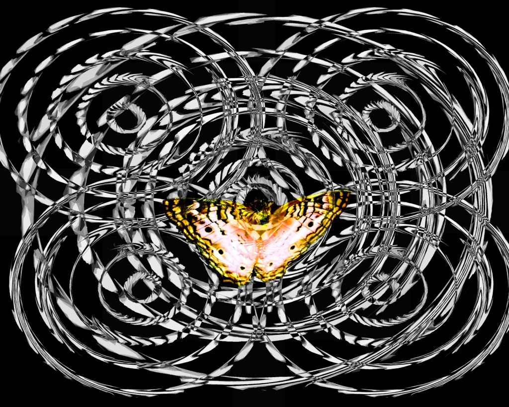 Comment on the new work: I’ve discovered a problem with the way I distort my photos. Each distortion removes the sharpness of the photograph. I have been going back through my various pattern photos and resharpening each. And there is a problem with intense color, as well. Intense colors tend to pixelate. I’ve been busy reworking both problems. Those problems only showed themselves on larger prints. The first two black and whites below may take ages to fix. I’ve been working with one newer worked combination which is still not complete at this date. I’m calling “Eyes”, so far. My goal is to enter various eyes into each black hole. The decision has not yet been made about the type of eyes. And the blending in of each eye needs to be closer to the black and white background. At least, I’m learning more about the digital side of photography. I’m also very aware that there is a down side to using film that is then digitalized. But even that is improving with each use. The down side is that I can’t just createan image by playing around with it’s combinations but need to pay attention to each distortion, each intense color use, each blending of images, etc. And that takes a lot more time. So, please, be patient for new work.
