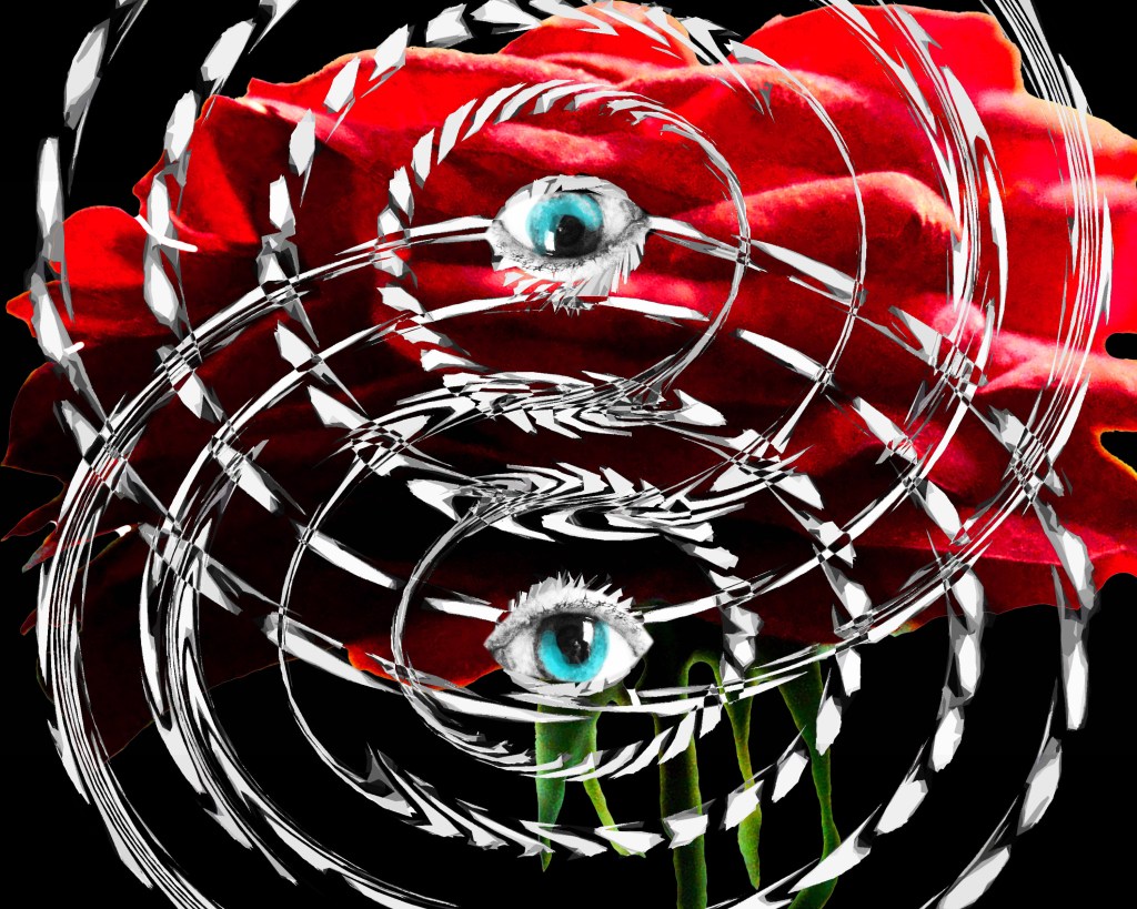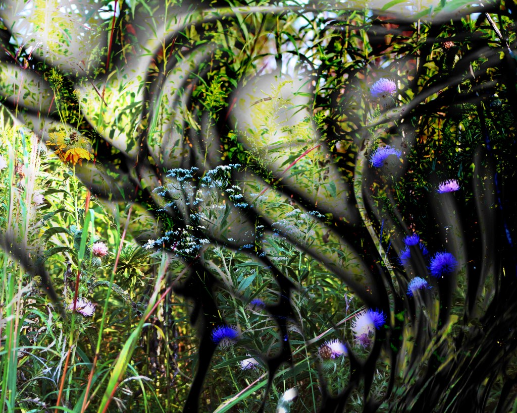 Addiction is the problem I am trying to deal with. So far, I’ve failed. But I’m not giving up. In Binary, you are starting to see a picture that reminded me of an early language like Linear A, Linear B, or Viking Runes ending up with my version of computer binary code. This week I used that early Linear looking picture as my symbol for the written language. By combining it with other photos each was given a different meaning. Mourning without Communication Skills is meant to symbolize how my lack of communication skills created a gut that is, to this day, unable to digest well. (When I was 16, it was called a spastic colon. Today it is called an IBS.) And lastly, Moonflower Sight, instead of language being emphasized, has eyes for its stamen. I do believe plants are sentient beings. I talk to our large Catalpa tree all the time. And yes, I’m a tree hugger when possible.