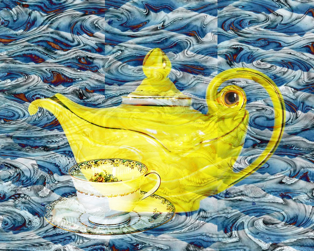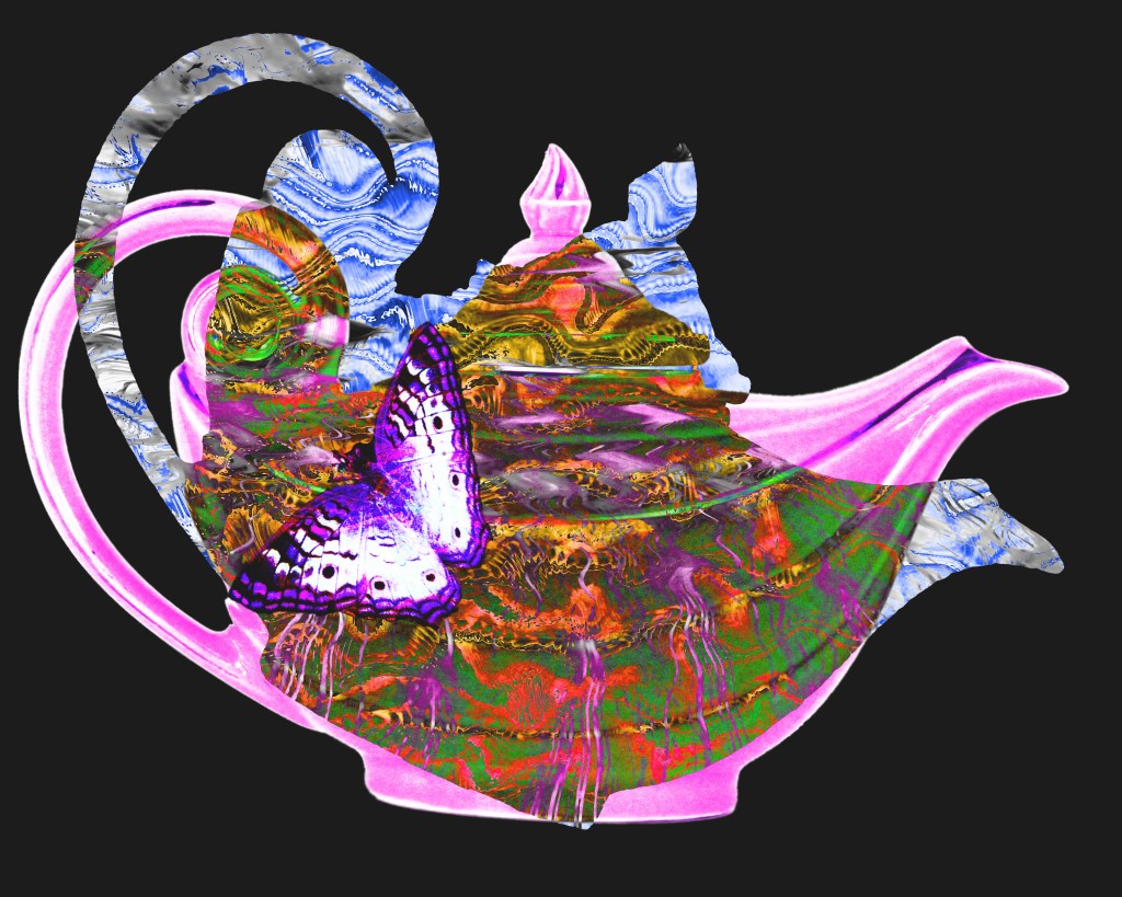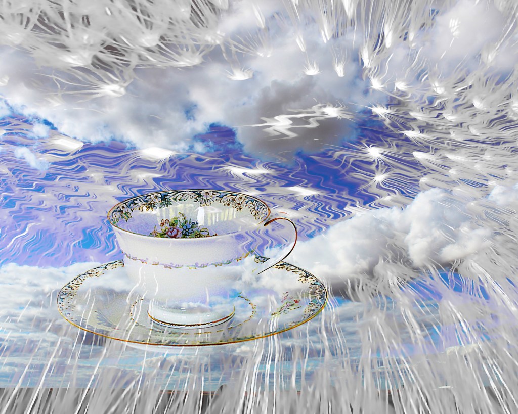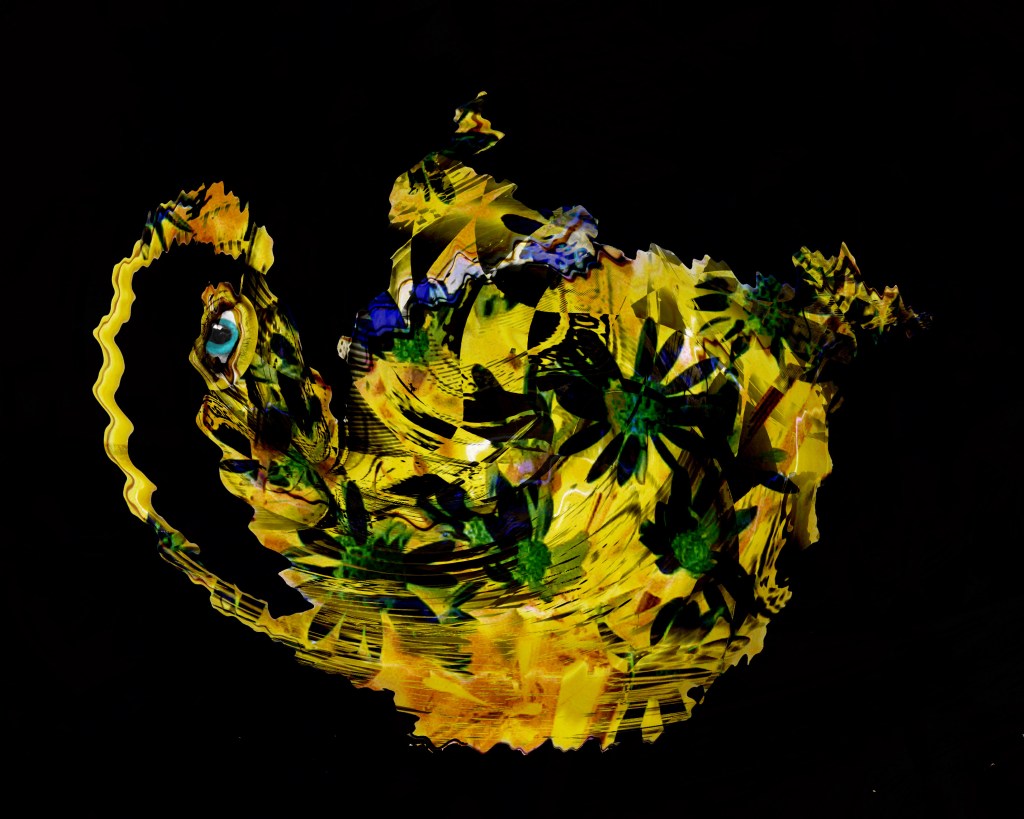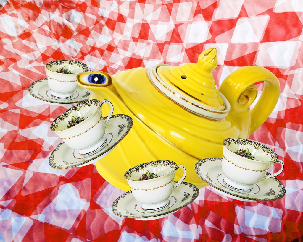 August 16, 2025: I went crazy this week. I think it is because school starts Monday. (In my other life, I’m a substitute teacher.) So, in my mind, I won’t be able to create that much and I’ll need to come back to a semi-normal person. Ironically, this summer I was trying to let my insane artist out. I almost got to the psychological point I was in college during my art degree. I still want to aim for that but subbing might get in the way. But ya’ gotta have money to make art. Anyway, this was the teapot and teacup week which I suspect will continue for a while. It was also photograph this thing, that thing. As the year continues I will be weeding out a lot of the photos below. You get to see the step before weeding, as well as, the progression of creating. What if I change colors? What if I change the position of this thing? What’s my message with this picture? What if I change the order of layers? There are a lot of what ifs involved.
