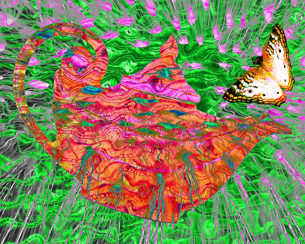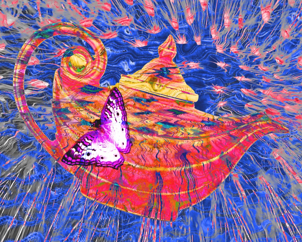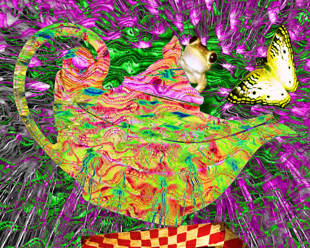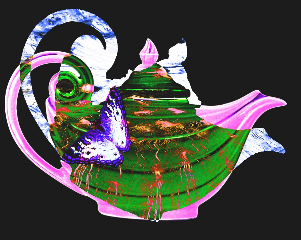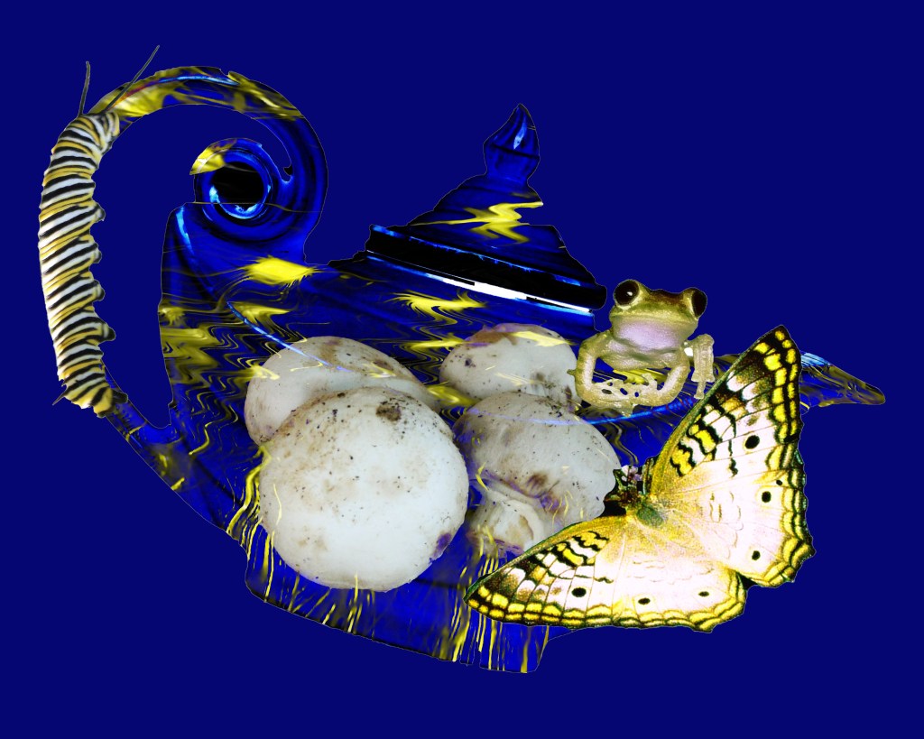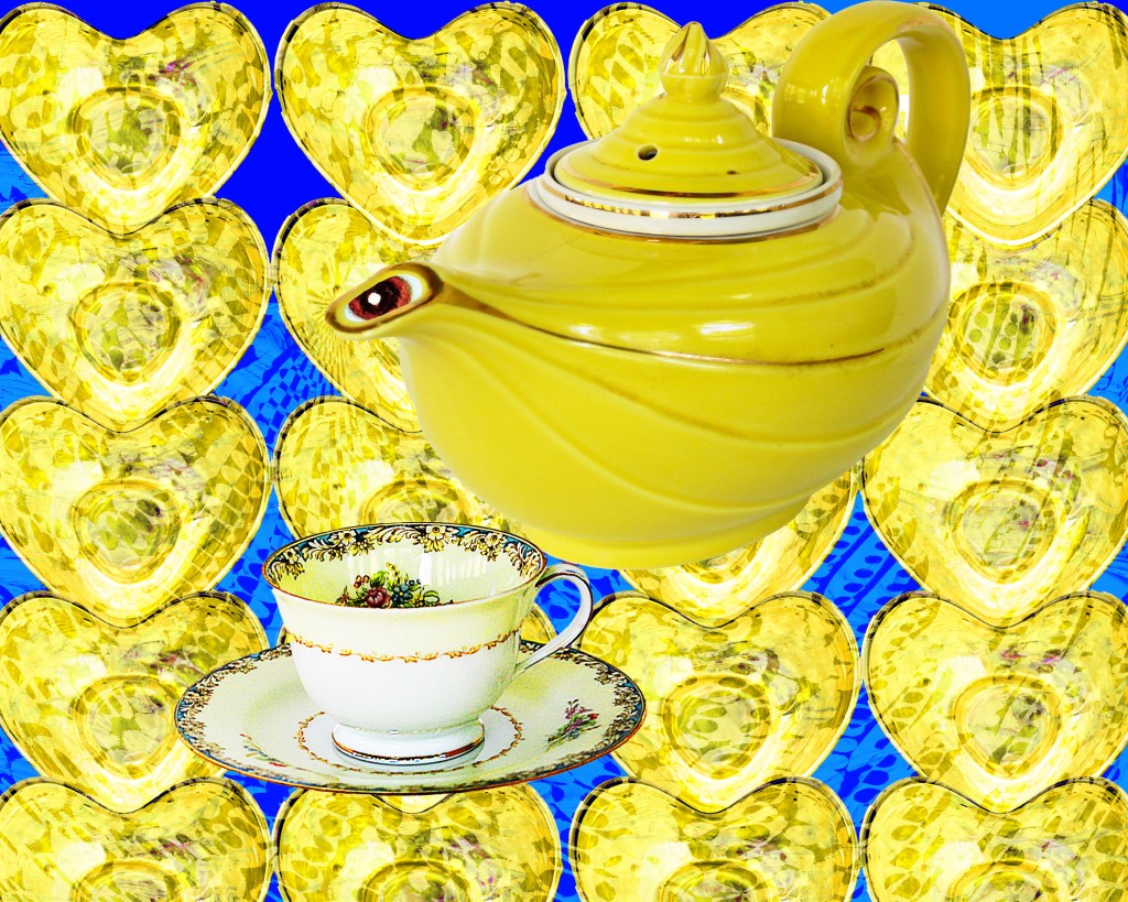 August 16, 2025: I went crazy this week. I think it is because school starts Monday. (In my other life, I’m a substitute teacher.) So, in my mind, I won’t be able to create that much and I’ll need to come back to a semi-normal person. Ironically, this summer I was trying to let my insane artist out. I almost got to the psychological point I was in college during my art degree. I still want to aim for that but subbing might get in the way. But ya’ gotta have money to make art. Anyway, this was the teapot and teacup week which I suspect will continue for a while. It was also photograph this thing, that thing. As the year continues I will be weeding out a lot of the photos below. You get to see the step before weeding, as well as, the progression of creating. What if I change colors? What if I change the position of this thing? What’s my message with this picture? What if I change the order of layers? There are a lot of what ifs involved.