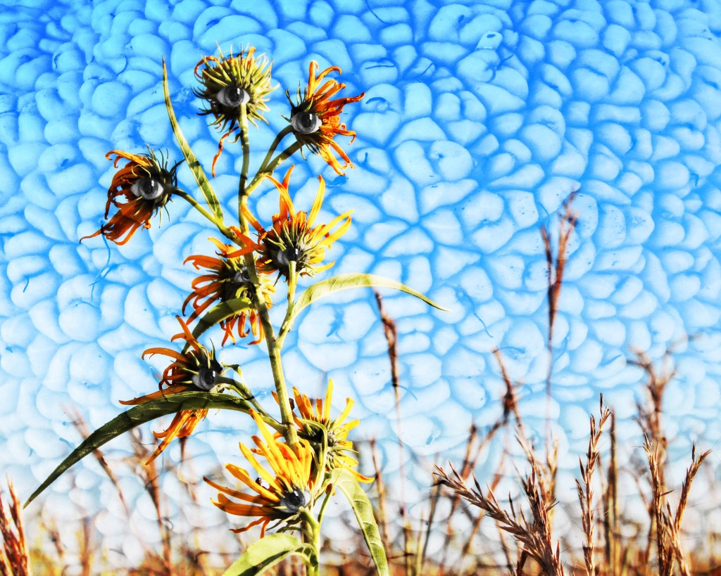My photography professor, Oscar Bailey. always encouraged us to try different things. My favorite memory of his teaching style was, “Mess up your negatives! Burn them! Then print them. Crack them! Experiment!” Though it took me decades to finally go digital, I followed his advice with Adobe Photoshop. As I was learning the program, I purposely crashed it. I play with it to see what may come out. I love combining things that mess up the order of seasons and/or items from differing places. After all, I am a mixed up mess from two very different states. And of course, I try to give my images some sort of rhyme and reason because even mixes need a bit of order. And the mixing I speak of also has to do with my mental state from too many traumas. Out of some mixes come delicious cakes.