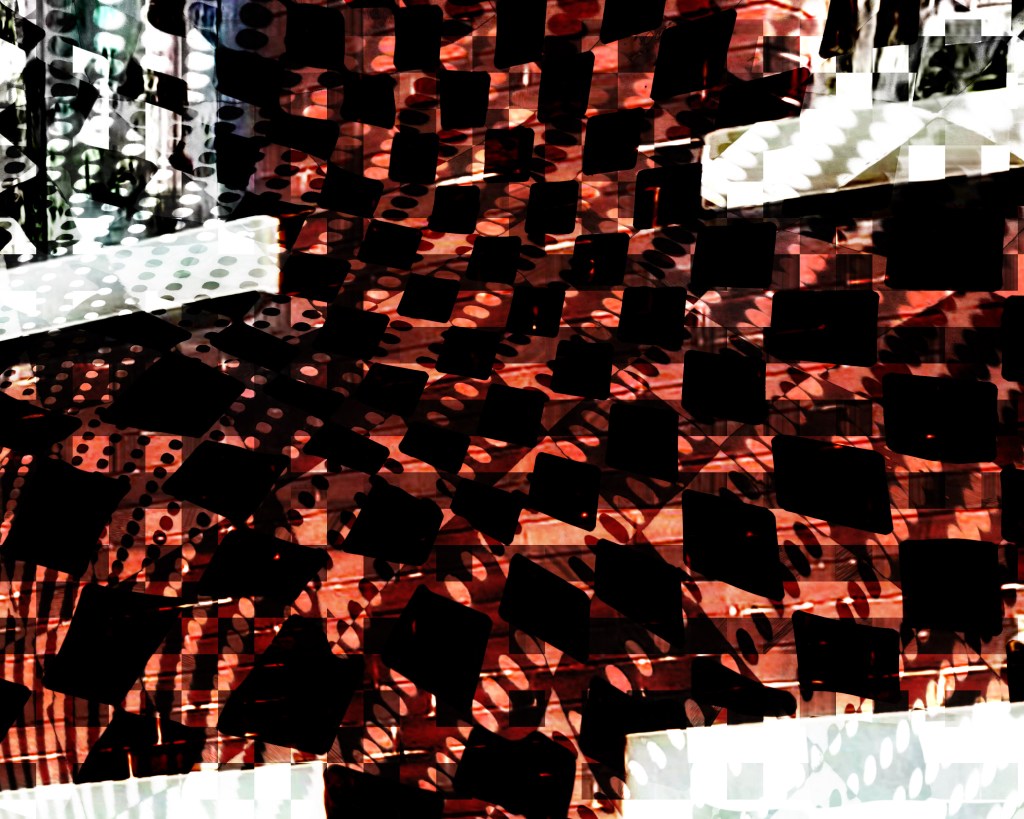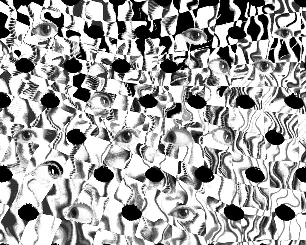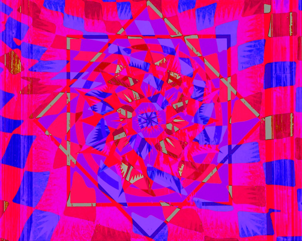Comment on the new work: I’ve discovered a problem with the way I distort my photos. Each distortion removes the sharpness of the photograph. I have been going back through my various pattern photos and resharpening each. And there is a problem with intense color, as well. Intense colors tend to pixelate. I’ve been busy reworking both problems. Those problems only showed themselves on larger prints. The first two black and whites below may take ages to fix. I’ve been working with one newer worked combination which is still not complete at this date. I’m calling “Eyes”, so far. My goal is to enter various eyes into each black hole. The decision has not yet been made about the type of eyes. And the blending in of each eye needs to be closer to the black and white background. At least, I’m learning more about the digital side of photography. I’m also very aware that there is a down side to using film that is then digitalized. But even that is improving with each use. The down side is that I can’t just createan image by playing around with it’s combinations but need to pay attention to each distortion, each intense color use, each blending of images, etc. And that takes a lot more time. So, please, be patient for new work.