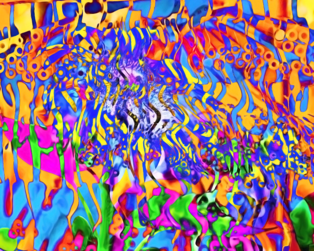 October 11, 2025: By Thursday I was sure I wouldn’t be able to top the last images for the theme, Psychedelic. It was as though I was saying this chapter is finished. I still believe I have more to go on this theme so, I will need to refer to this one as Psychedelic 1. I started playing around with the idea of a Psychedelic 2. Nothing great came out. For all I know, next year’s theme is not Psychedelic 2 but a theme yet to present itself. I will need to play around for a bit. What I do know is that my work has upped a notch. That makes me happy. So, enjoy the few I have here.