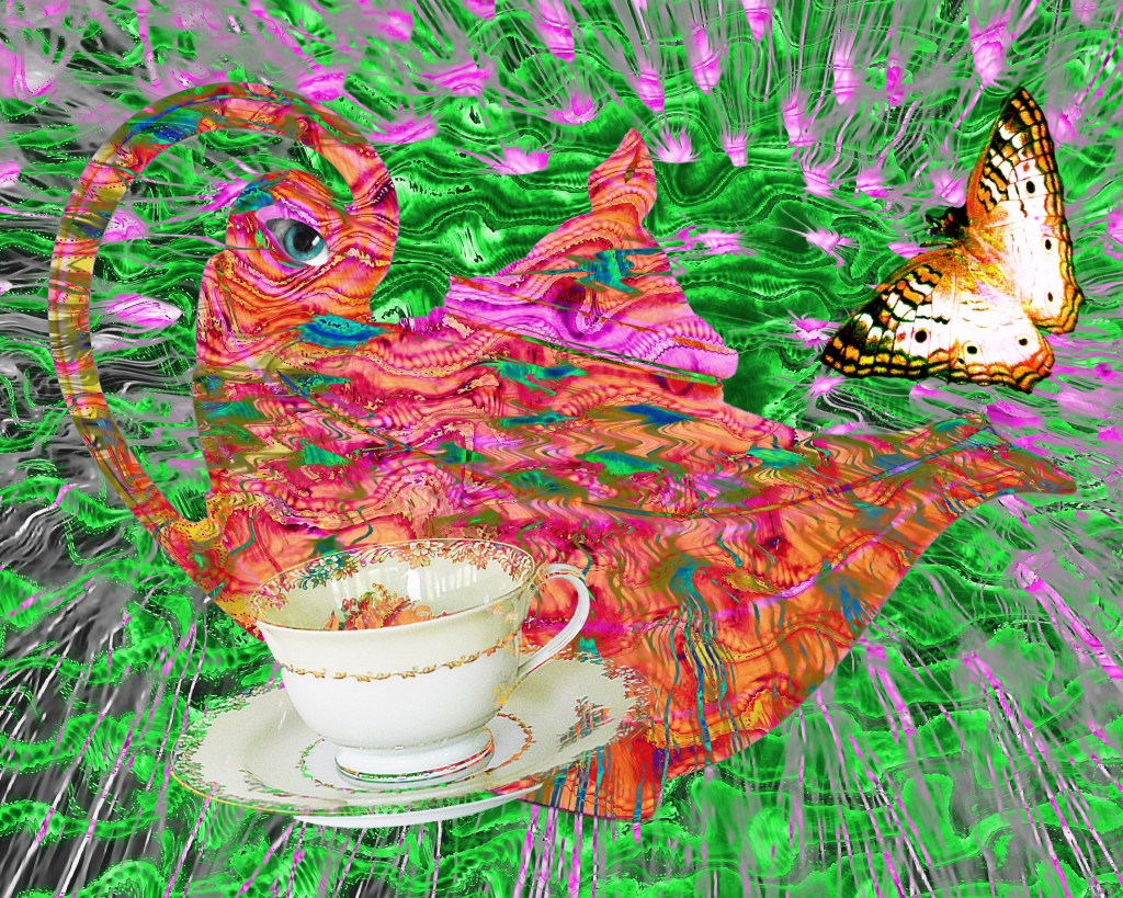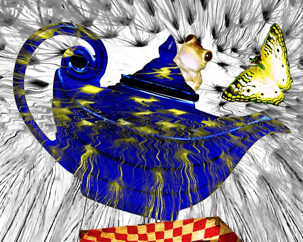 August 16, 2025: I went crazy this week. I think it is because school starts Monday. (In my other life, I’m a substitute teacher.) So, in my mind, I won’t be able to create that much and I’ll need to come back to a semi-normal person. Ironically, this summer I was trying to let my insane artist out. I almost got to the psychological point I was in college during my art degree. I still want to aim for that but subbing might get in the way. But ya’ gotta have money to make art. Anyway, this was the teapot and teacup week which I suspect will continue for a while. It was also photograph this thing, that thing. As the year continues I will be weeding out a lot of the photos below. You get to see the step before weeding, as well as, the progression of creating. What if I change colors? What if I change the position of this thing? What’s my message with this picture? What if I change the order of layers? There are a lot of what ifs involved.